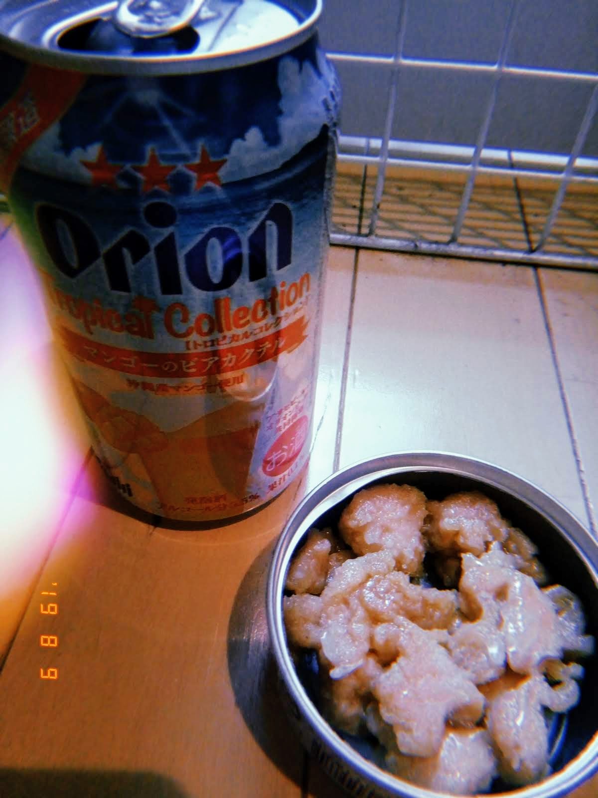 マンゴービアカクテルとからあげの缶詰めでーす。