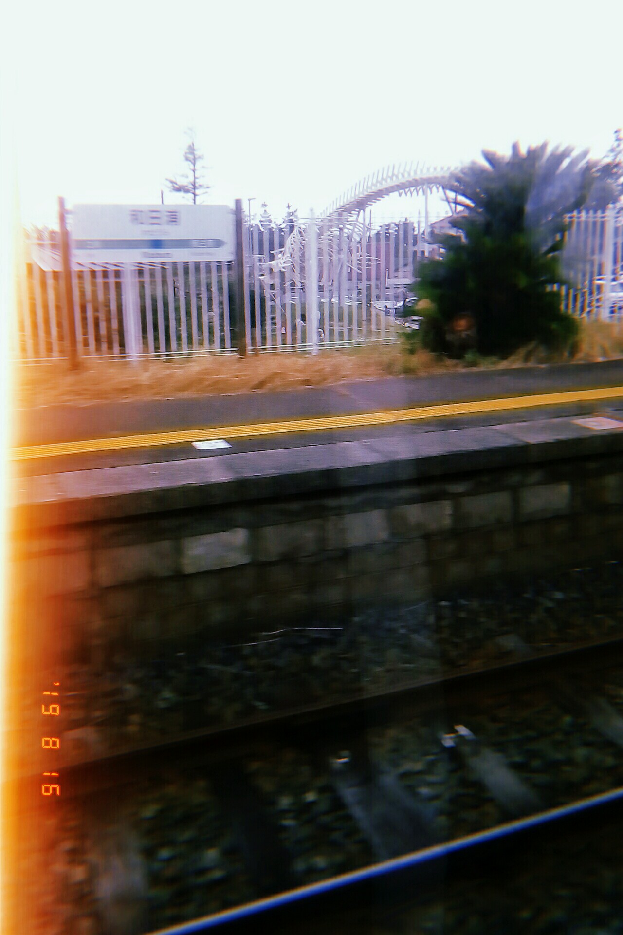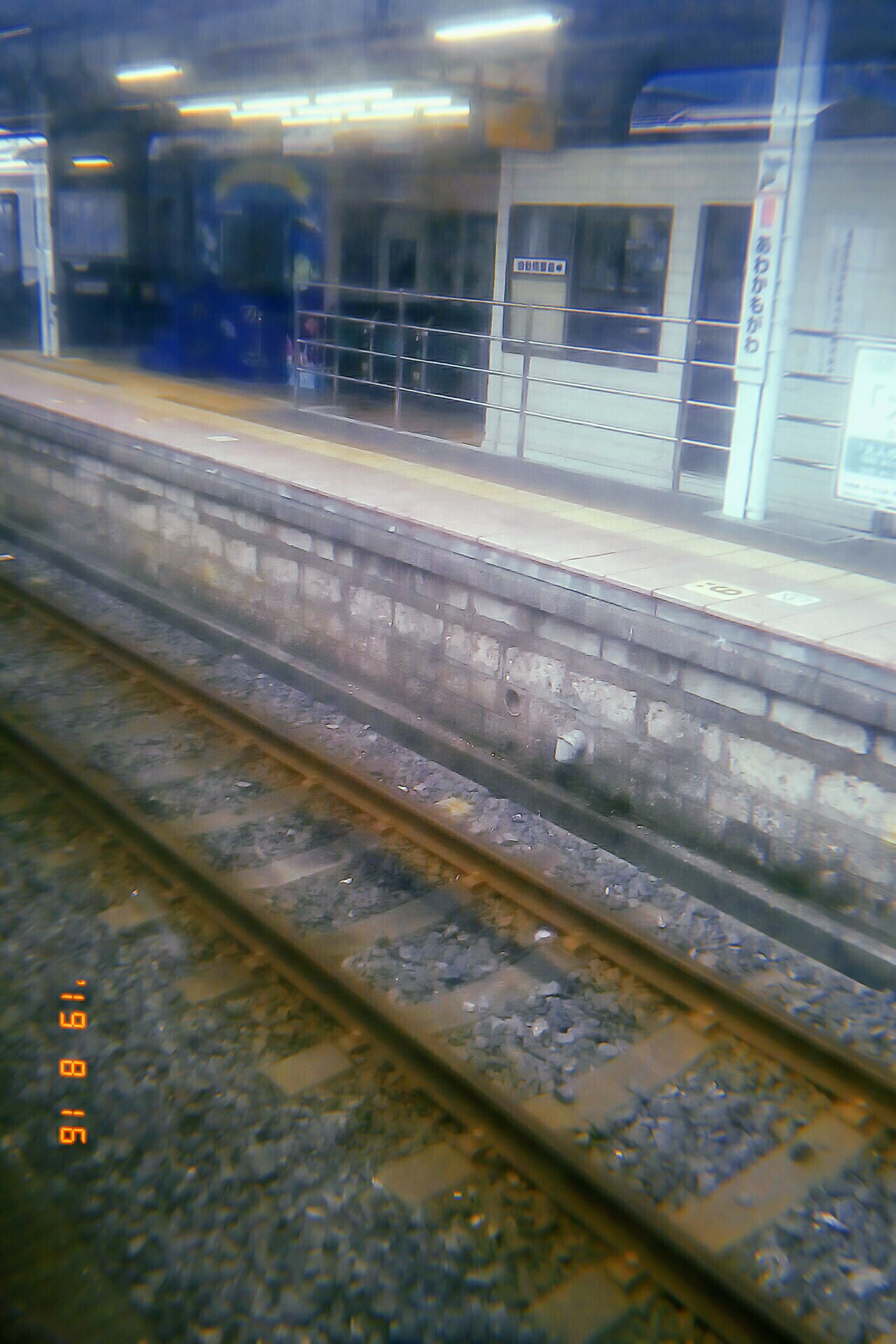 待ち時間30分をホームのベンチで梅割り飲みながら過ごす。