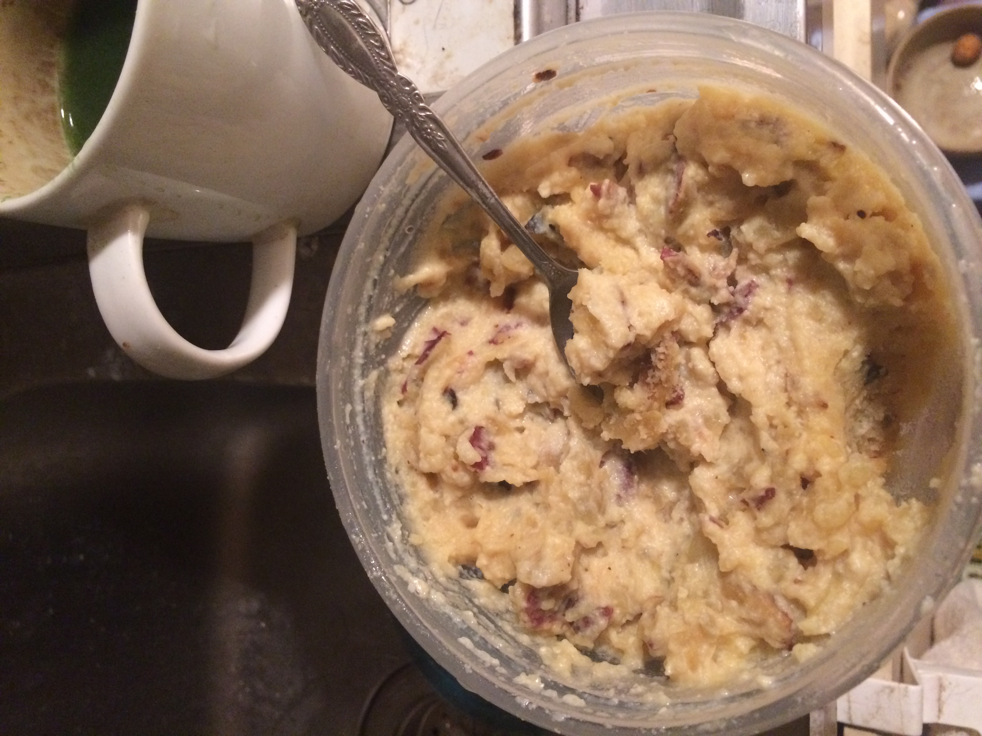 柔らかくなったところで耐熱容器にいれてスプーンかフォークで適当につぶします。